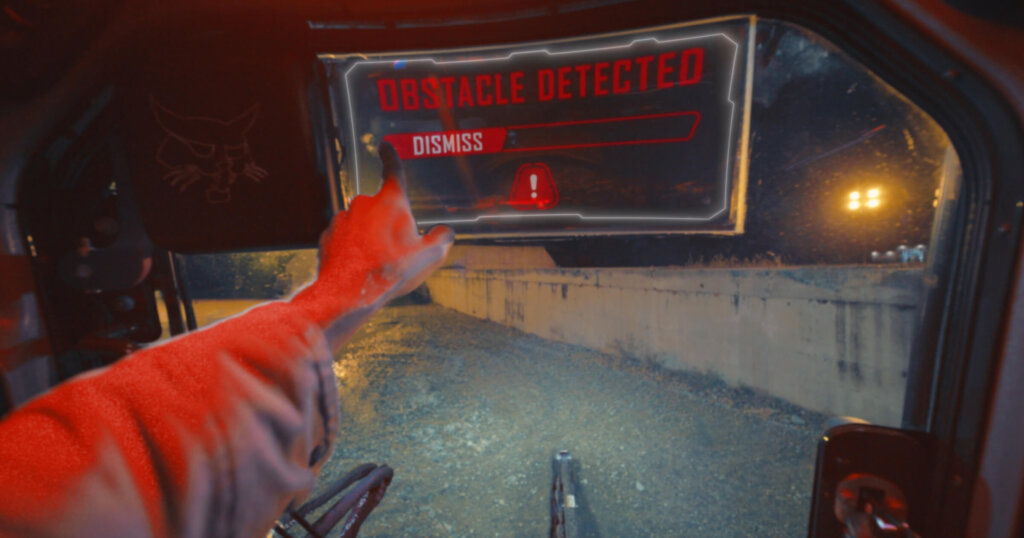 One of Bobcat’s concepts included a transparent MicroLED display integrated into the cab window. The concept display, which is still in testing, overlays machine data directly into the operator’s field of view and can be used for various functions, including: