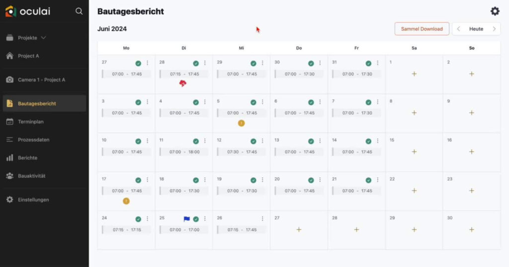 Once installed, Oculai’s system tracks specific work steps, such as concrete pours, formwork, or façade installation. The AI learns from patterns on each site and then generates progress curves automatically, so planners can actually see if they’re behind or ahead of schedule without manually inputting any data. That saves hours of admin work every week.